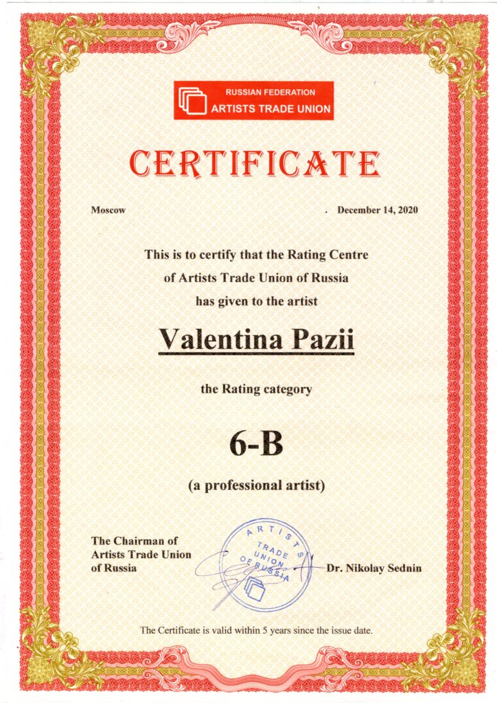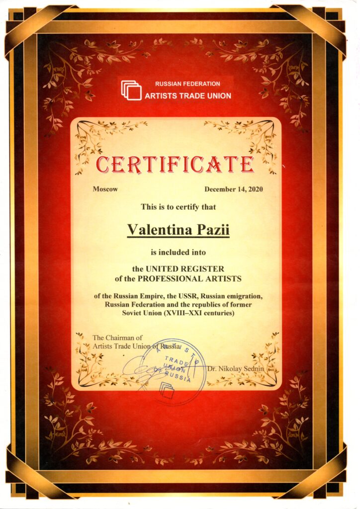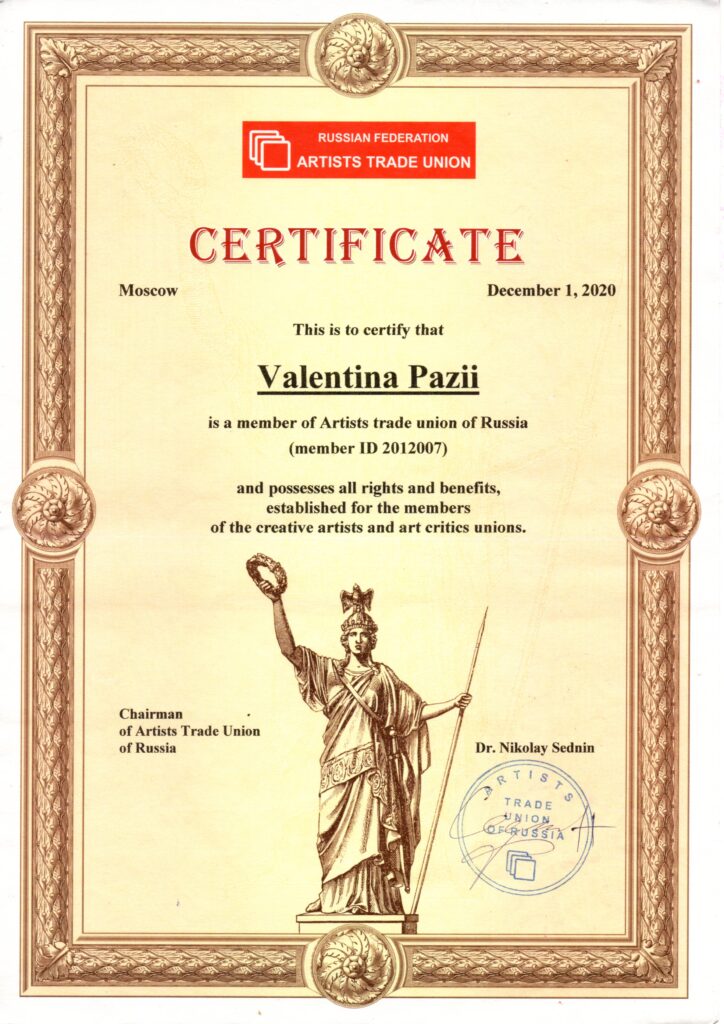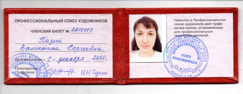 ПРОФЕССИОНАЛЬНЫЙ СОЮЗ ХУДОЖНИКОВ. г. Москва , дата вступления 01.01.2020 г.