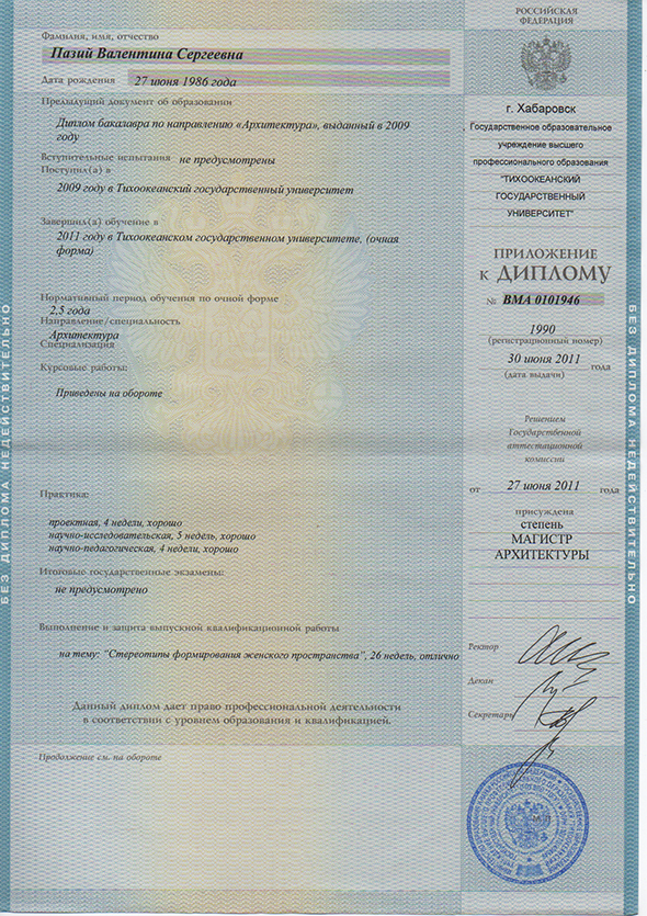 2003-2011 гг Тихоокеанский Государственный Университет г. Хабаровска, кафедра Дизайна и Архитектуры (направление дизайн архитектурной среды)